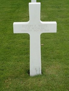 1st Lt Rupert E. White graduated from Bristol High School in 1937 and attended the University of Vermont.He was awarded the Bronze Star Medal posthumously. The citation cited: For heroic achivement in miltiary operations against the enemy in western Europe. During the period 2 July 1944 to 23 November 1944, 1st Lt White distinguished himself by his consistently sound judgment, aggressiveness and execution. From 16 November 1944 to 23 November 1944, while his unit supported an attack by the 29th infantry division he was required to act as forward observer, often from positions dangerously close to the enemy. It was on just this type of mission that he was killed when he attempted under heavy enemy shelling to direct the fire of his platoon. His courage, leadership and devotion to duty, always of the highest were a credit to himself and the military service.