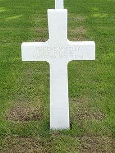 Pvt Eugene D. Whitley enlisted in Sacramento, California on 20 October 1943 and joined his unit on 10 November 1944.At 2.45 am, an enemy airplane dropped several bombs. A direct hit on one of the houses, occupied by Service Company, killed 8 men, all members of Battalion Maintenance Platoon.