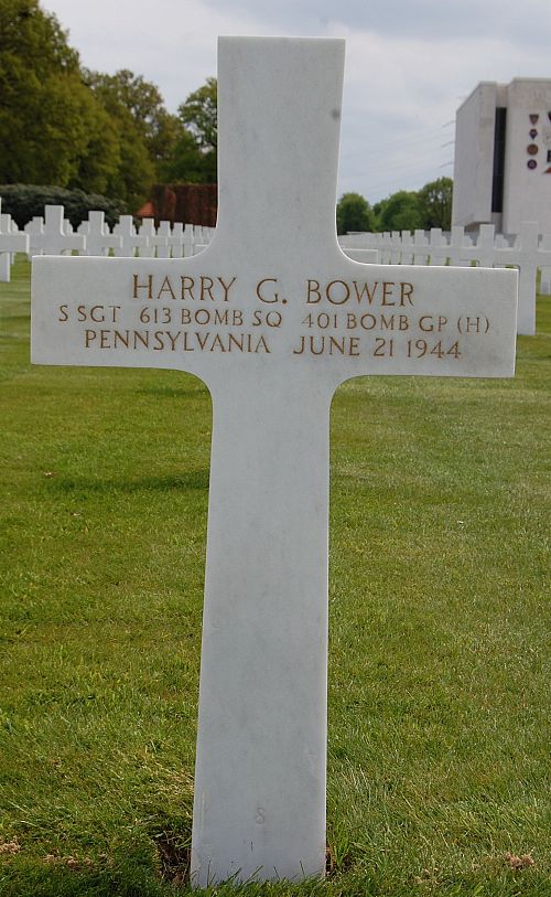 Harry G. Bower volunteered for the Air Corps of the Army of the United States in Harrisburg, Pennsylvania on 9 October 1942.The airplane was hit by flak and, after limping to the Danish coast escorted by friendly fighters, wisely judged that he could not make it back to England and made for Sweden.