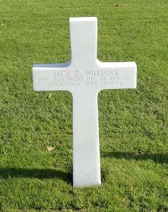 Pvt Jack Williams joined the army on 26 July 1943.He was first buried at the Temporary American Military Cemetery of Molenhoek on 21 September 1944. He was disinterred on 11 June 1948 and evacuated to Margraten on 15 August 1948 and buried in a temporary grave. After being disinterred and after the cemetery was given a permanent status he was given his final resting place on 20 December 1948.