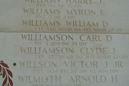 T/5 Carl D. Williamson graduated from Howard College (now Samford University) in 1942. He majored in history and played on the football team all four years where he was considered one of the best runners, blocker and tackler of the team. He enlisted at Fort McClellan, Alabama on 28 December 1942.Source of information: Danny van der Groen, Terry Hirsch, www.abmc.gov - WWII Enlistment record, www.ancestry.com - Alabama WWII Military Dead and Wounded, 1944-1946 / Trotter Snelgrove Family Tree, www.newspapers.com - The Union Banner - 3 May 1945