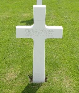 Pfc Steve S. Wozniak was leading a patrol outside Georgenthal, Germany when they were attacked. In a brief firefight Pfc Wozniak was killed. He left behind a wife and two young sons.Source of information: Leo Minne, Marc van den Berkmortel, www.abmc.gov, www.wwiimemorial.com, www.ancestry.com - 1910/1940 Census / Doumont Family Tree, http://www.89infdivww2.org/combat/index.htm, https://1000fish.wordpress.com/2015/08/12/a-quappe-for-steve/