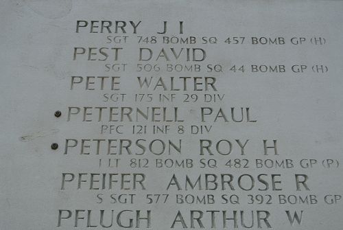 Pfc Peternell's brother, ARM2 Edward Peternell, is listed on the Courts of the Missing at the Honolulu Memorial in Honolulu, Hawaii.