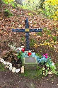 The picture of the self made grave marker is on the spot were his remains were found in Bergstein, Germany.