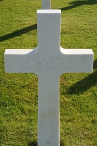 The remains of Pvt Kenneth Goodhart were found in Germeter and initially registered as Unknown X-6557. He was evacuated to Ardennes Cemetery and was identified at the identification center.