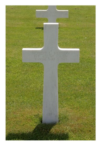 Pvt Robert L. Herron was a construction worker before he enlisted at Fort Sill, Oklahoma on 24 March 1944.He was taken prisoner on 16 December 1944 and died at Stalag III-B.