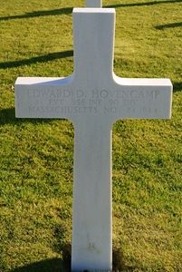 Pvt Edward D. Hovencamp was a welder and flame cutter before he enlisted in Boston, Massachusetts on 15 July 1943.Source of information: Peter Schouteten, www.abmc.gov, www.wwiimemorial.com, www.archives.gov - WWII Enlistment Record, www.ancestry.com - U.S. Headstone and Interment Records for U.S. Military Cemeteries on Foreign Soil