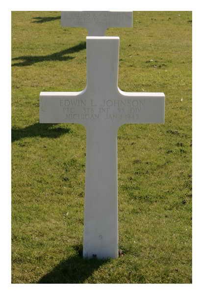 Pfc Edwin L. Johnson enlisted in Traverse City, Michigan on 7 July 1942.Source of information: www.abmc.gov, www.archives.gov - WWII Enlistment Record, www.wwiimemorial.com, www.ancestry.com - JMalmborg / 1930/1940 Census, The Escanaba Daily Press