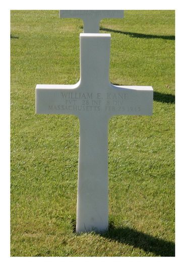 Pvt William E. Kane was a longshoreman before he enlisted in Boston, Massachusetts on 5 September 1942.Pvt William E. Kane is remembered on a memorial in Holyoke, Massachusetts.