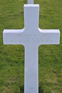 Pvt Santiago H. Lopez enlisted in Santa Fe, New Mexico on 3 April 1942.First buried at Temporary American Military Cemetery Marigny, France Block P, Row 3, Grave 54.