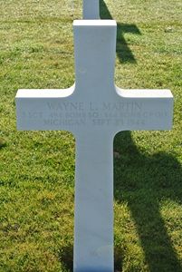 The aircraft was hit by flak over the target area. The left wing was shot off, the plane flipped over on its back and went down in a spin. No parachutes were seen to leave the aircraft. The entire crew of six men was killed.S/Sgt Wayne L. Martin is remembered at Bartlett Cemetery in Bartlett, Washington County, Ohio with a memorial marker.