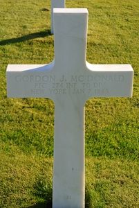Pfc Gordon J. Mc Donald was a stock clerk before he volunteered for the US Army in New York City, New York on 17 October 1942.Pfc Mc Donald peered out of the foxhole to assess their situation. The drab gray-green of his infantry helmet moving on a backdrop of white snow caught the eye of a nearby German soldier. Gunfire erupted, and Mc Donald slumped back into the foxhole, lifeless, with fatal wounds to his head.