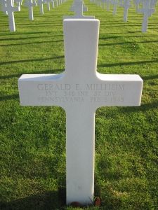 Pvt Gerald E. Millheim enlisted in Allentown, Pennsylvania on 18 July 1944. He was a chauffeur before he enlisted.Pvt Gerald E. Millheim first buried at Temporary American Military Cemetery Ardennes, Belgium Block I, Row 7, Grave 168.