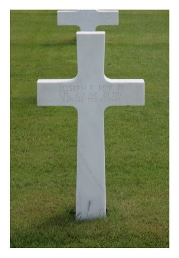 Cpl Joseph F. Reif Jr. was taken prisoner on 22 December 1944 and died the hospital at Stalag III-B.According to a letter dated 14 May 1948 from Major General H. B. Lewis of the War Department both his legs were amputated as a result of wounds received in action. He died of pulmonary embolism.