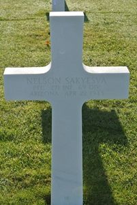 Pfc Nelson Sakyesva was a painter before he enlisted at Fort Bliss El Paso, Texas on 27 January 1942.Source of information: Peter Schouteten, Terry Hirsch, www.abmc.gov, www.wwiimemorial.com, www.archives.gov – WWII Enlistment Record, www.ancestry.com - U.S., Headstone and Interment Records for U.S. Military Cemeteries on Foreign Soil, WWII Draft Card