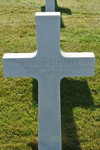 S/Sgt Richard L. Shott joined the U.S. Army Reserve in Columbus, Ohio on 26 July 1943.The airplane had received a direct hit in #3 engine. All men believed to have bailed out after the aircraft had been hit over the battle area. Of the nine men crew, seven could return to Allied lines. Two men were killed.