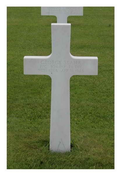 Pfc George Slama graduated from Havelock High School. He attended the University of Nebraska for two years.He joined the Regular Army in Fort Crook, Nebraska on 20 August 1941. He was selected for the ASTP program and sent to the University of Chicago. When this program was disbanded, he was transferred to the infantry and sent overseas in October 1944.