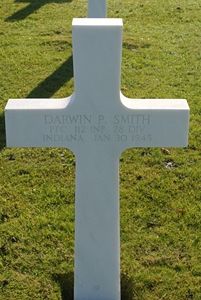 Pfc Darwin P. Smith enlisted in Evansville, Indiana on 11 November 1942. He was sent overseas in October 1944.Source of information: André Koch, Terry Hirsch, www.abmc.gov, www.wwiimemorial.com, www.ancestry.com - 1930/1940 Census / U.S. Headstone and Interment Records for U.S. Military Cemeteries on Foreign Soil, WWII Draft Card