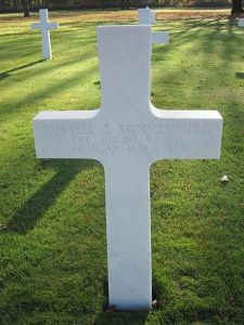 Pvt Russell J. Sonnenburg was first buried at Block BB, Row 8, Grave 186.Source of information: Peter Schouteten, Terry Hirsch, www.abmc.gov, www.wwiimemorial.com, www.ancestry.com - U.S., Headstone and Interment Records for U.S. Military Cemeteries on Foreign Soil / O'Neil Family Tree, 1920 US Census, WWII Draft Card