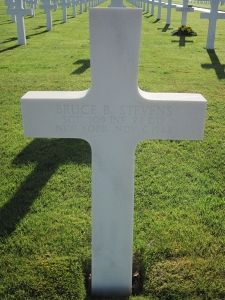 Sgt Bruce B. Stevens enlisted in Buffalo, New York on 21 April 1941.Sgt Bruce B. Stevens Silver Star citation reads: "For gallantry in action against the enemy on 2 November 1944, in the Hurtgen Forest, Germany. Sergeant Stevens assumed command of his squad when its leader was wounded while making an attack upon dug-in enemy positions and log bunkers. Two squads were unable to continue the attack because of the enemy's heavy concentration of machine gun fire. Leading his squad around the left flank of the platoon, he succeeded in reaching a flanking position upon the enemy's two machine gun emplacements. He then crawled forward to within approximately 35 yards of one of the enemy positions and by throwing two hand grenades, totally destroyed the machine gun and its crew. Sergeant Stevens then set out to destroy the second machine gun some short distance away. While bravely exposing himself to signal the members of his squad to provide him the covering fire, he was wounded in the stomach. His daring destruction of the first machine gun permitted his squad to move up and knock out the second enemy position and allow the platoon to continue to advance. His gallant behavior, devotion to duty and supreme coolness under enemy fire, reflects great upon Sergeant Stevens and the Armed Forces of the United States."
