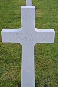Pfc West F. Taylor enlisted in Oklahoma City, Oklahoma on 11 June 1942.Source of information: Peter Schouteten, www.abmc.gov, www.wwiimemorial.com, www.archives.gov - WWII Enlistment Record, www.ancestry.com - Ray Bronsworth Family Tree