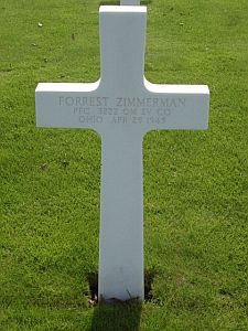 Forrest Zimmerman attended 1 year of high school, worked as a routeman and was single, with dependent.He entered the Service from Columbus, Ohio on 23 April 1943 as a Private.