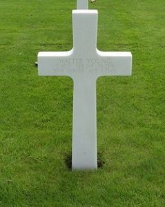 T/Sgt Walter Young was employed by Columbia Broadcasting System. He enlisted on 13 June 1942 and was sent overseas in November 1944.T/Sgt Walter Young was posthumously awarded the Silver Star for gallantry in action. A part of the citation reads: ".. deemed it advisable to notify his Company Commander of their precarious position .. crossed sixty five yards of open terrain through a hail of enemy fire despite his wounds, he crawled approximately fifty yards further."