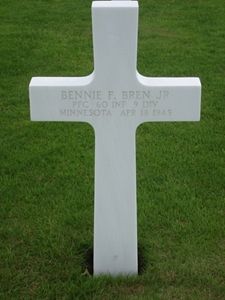 Bennie F. Bren Jr. enlisted on 26 February 1942 at Fort Snelling in Minnesota.Source of information: Peter Schouteten, Astrid van Erp, www.wwiimemorial.com, www.ancestry.com, www.archives.gov, www.ancestry.com - Family Trees