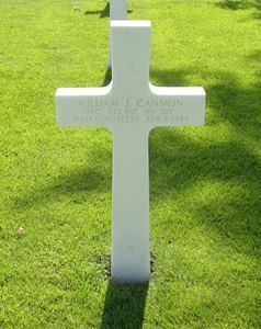 Pfc William J. Cannon graduated from Everett High School in 1929. He also attended Bentley College. He was a retail manager.He enlisted at Fort Devens, Massachusetts on 30 March 1944.