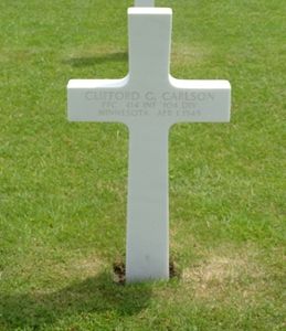 Pfc Carlson was wounded in action on 31 March 1945 and succumbed to his injuries a day later.