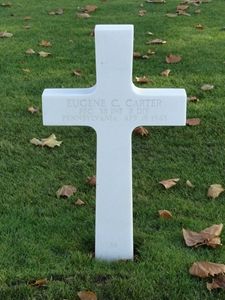 Pfc Eugene C. Carter enlisted at Camp Lee, Virginia on 6 June 1941.He attended the Church Farm School for boys outside of Philadelphia, Pa. He was a member of the class of 1934. He was 1 of 5 boys from this tiny boarding school who made the ultimate sacrifice during WWII. There is a brass plaque on an inside wall of the school's chapel to remember him and he is also featured with his picture and a brief biography in the school's Alumni Hall with other heroes who died in line of duty.