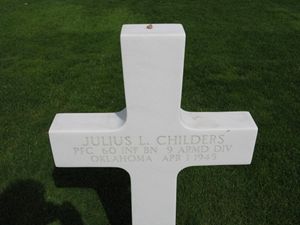 Pfc Julius L. Childers attended Bethel High School in Shawnee and worked as a farm handHe enlisted in Oklahoma City, Oklahoma on 9 July 1942.