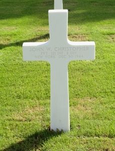 Pvt John W. Christopher attended Poughkeepsie High School and was employed by the Western Union and Glenwood Clothes Inc.He enlisted in Albany, New York on 16 June 1943. He served first in the Anti-Aircraft Defenses receiving his training at Camp Stewart, Georgia. and later transferred to the Infantry. After additional training at Camp Pickett, Virginia, he was sent overseas in August 1944.