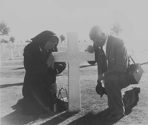 Pvt Carmen A. Cirocco was employed at Ford Aircraft in Dearborn, Michigan.One of the photos was taken when his parents visited his grave in 1959.