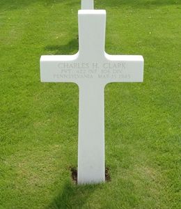 Pvt Charles H. Clark enlisted in Harrisburg, Pennsylvania on 3 June 1943 and was sent overseas in October 1944.Pvt. Clark was taken prisoner on 17 December 1944 two months after he had gone overseas. He died in Stalag IX-B.