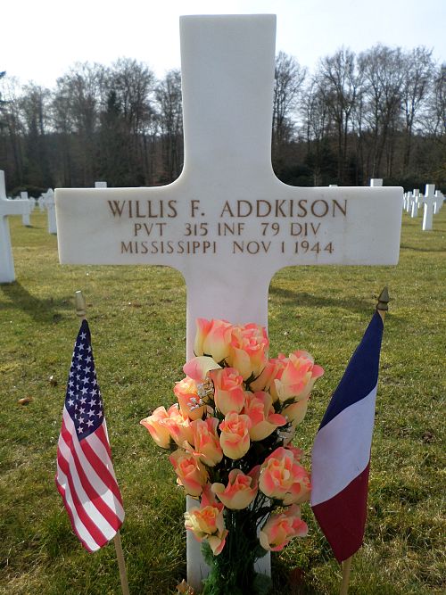 Pfc Willis F. Addkison attended high school for two years and worked on a farm before he enlisted at Camp Shelby, Mississippi on 7 March 1944.Source of information: Peter Schouteten, www.abmc.gov, www.wwiimemorial.com, www.archives.gov – WWII Enlistment Record, www.ancestry.com - Headstone and Interment Record / U.S. WWII Draft Cards Young Men / 1930 Census, Combat History 79th Infantry Division, www.findagrave.com – MAJ Jimmy Cotton