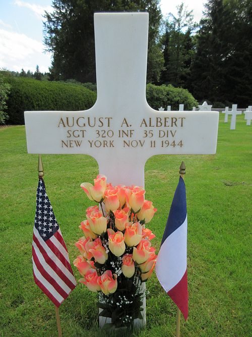 Sgt August A. Albert was employed at the New York Post Office station North before he enlisted.Source of information: Peter Schouteten, www.abmc.gov, www.wwiimemorial.com, www.ancestry.com, - Headstone and Interment / U.S. WWII Draft Cards Young Men / New York Index to Marriage Licenses / New York Birth Index, After Action Report 35th Infantry Division, Fold 3