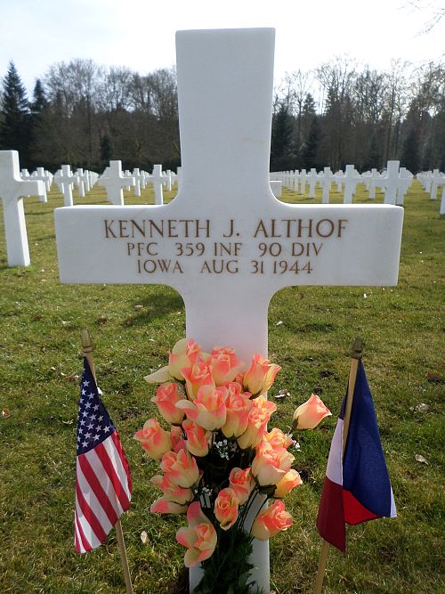 Pfc Kenneth J. Althof attended high school for 3 years before he enlisted in Camp Dodge Herrold, Iowa on 2 March 1943.He was a victim of gunshot wounds while he was removing a gun from a vehicle.