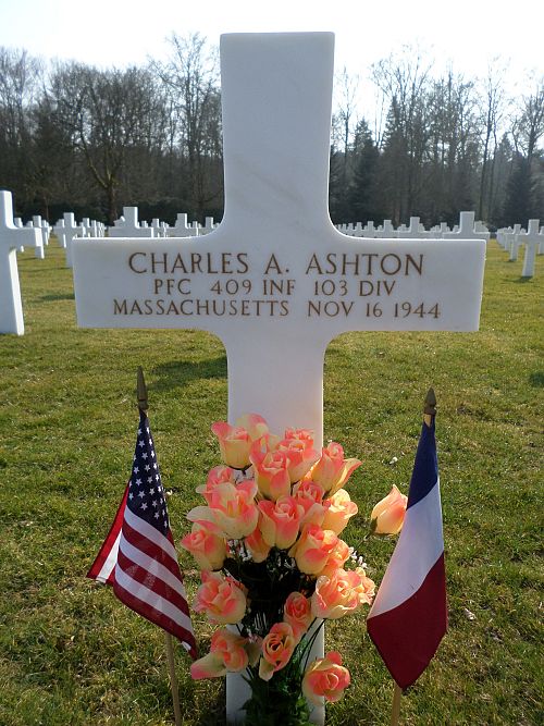 Pfc Charles A. Ashton attended four years of high school. He was employed at David N. Taft Manufacturing Company.He enlisted at Ft Devens, Massachusetts on 19 March 1943.