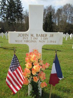 Pvt John M. Baber graduated from East Bank High School and was a car repairman employed by the Charleston Transit Co.He enlisted in Huntington, West Virginia on 11 November 1943 and had his basic training at Camp Shelby, Mississippi.