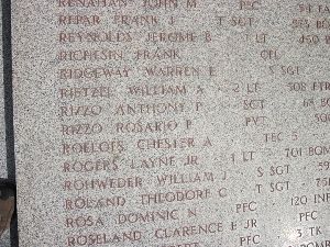 Pvt Rosario P. Rizzo attended Benjamin Franklin High School.He enlisted in Rochester, New York on 15 July 1942. He was sent overseas in August 1943.