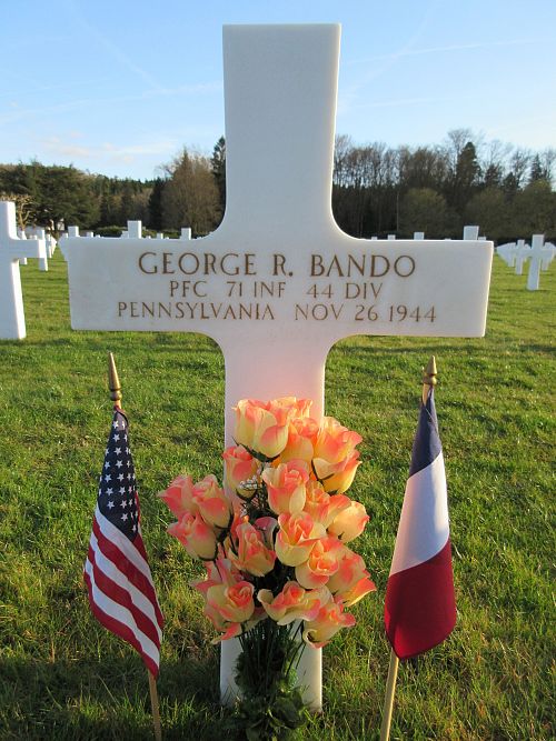 Pfc George R. Bando graduated from Ramsay High School in 1942 and was a driver before he enlisted in Greensburg, Pennsylvania on 23 February 1943. Ha was sent overseas in August 1944.He was killed by artillery shell fragments in his stomach.