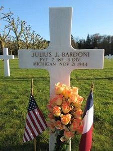 Pvt Julius J. Bardoni attended high school for two years and was a chauffeur before he joined the Regular Army in Detroit, Michigan on 5 August 1940.He was killed by artillery shell fragments in the abdomen and leg.