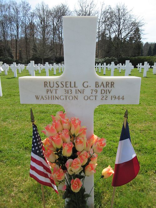 Pvt Russell G. Barr attended Vancouver High School for four years and was a driver at the Vancouver Ice and Coal Company before he enlisted in Portland, Oregon on 22 October 1943.He was killed by artillery shell fragments.