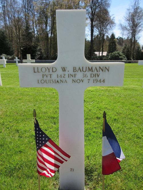 Pvt Lloyd W. Baumann was married to June C. House in November 1939.Source of information: André Koch, www.abmc.gov, www.wwiimemorial.com, www.ancestry.com - 1920/1930/1940 Census / Headstone and Interment Record / U.S. WWII Draft Cards Young Men / New Orleans, Louisiana, Birth Records Index / 142ndaar-.pdf / https://36th-id.frb.io