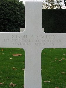 1st Lt Starkey graduated from du Pont Manuel Training High School and worked in a paint company.The aircraft suffered a direct hit by heavy flak in the bomb bay. At the same time, it blew off the left wing and engine and about twelve feet of the tail was blown clear of the aircraft.