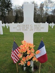 Pvt Jacques G. Betz attended high school for four years and was a mechanic and repairman at the Ranger Aircraft at Farmingdale before he enlisted in New York City, New York on 21 August 1944.He was first buried at the Temporary American Military Cemetery in St. Avold, France.