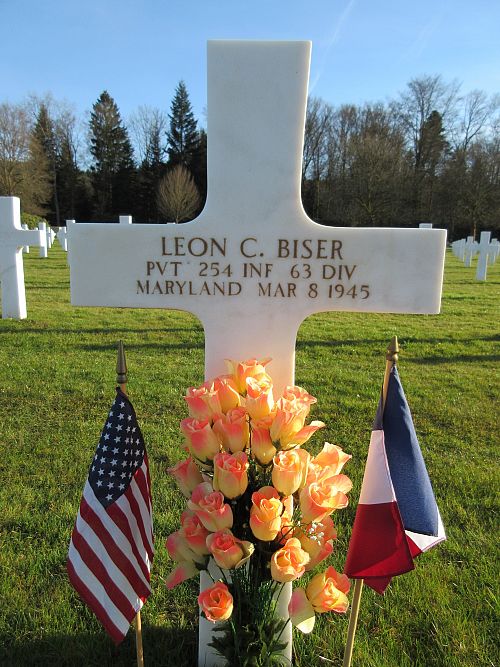 Source of information: Peter Schouteten, Terry Hirsch, www.abmc.gov, www.wwiimemorial.com - Leon C. Biser, www.archives.gov - WWII Enlistment Record, www.ancestry.com - Headstone and Interment Record / Bliser Stephens Tree / U.S. WWII Hospital Admission Card Files, www.63rdinfdiv.com, www.findagrave.com - Cari Dobbs, 1950 US Census