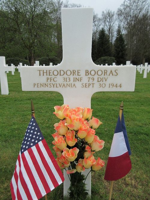Pfc Theodore Booras worked as a waiter in the family restaurant before he enlisted in Pittsburgh, Pennsylvania on 4 January 1943.He was taken prisoner and died in a German POW camp. The exact location is not known.