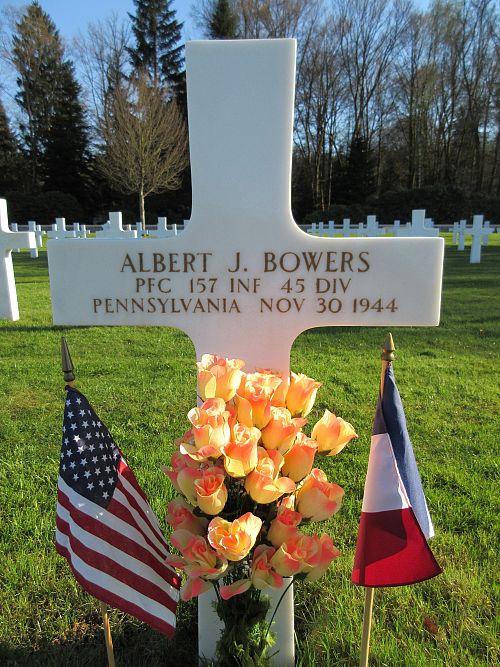Pfc Albert J. Bowers attended high school for 1 year and was a stock clerk before he enlisted in Fort George G Meade, Maryland on 13 February 1942.Source of information: Peter Schouteten, www.abmc.gov, www.abmc.gov, www.wwiimemorial.com, www.archives.gov – WWII Enlistment Record, www.ancestry.com - Headstone and Interment Record / Pennsylvania Veteran Compensation Application Files WWII, http://www.45thdivision.org